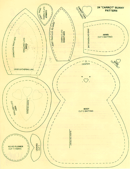- Scraps of fabric for carrots, carrot tops, leaves and