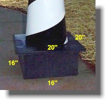 Step 5. Place unit in location and wire electricity to lighthouse wire in base cavity. Install lighthouse level and plumb. Build up around base with brick, stone, dirt, or mulch to cover square base and add stability.