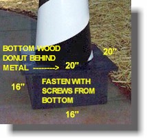 Step 6. Fasten 10" round plywood top on center of top wood donut as shown in picture on left. Use 4 wood screws through the plywood into the wood below.