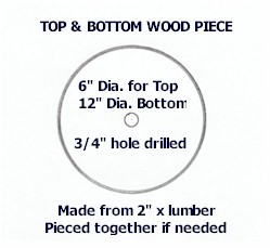 Step 4. Make 10" round donut from 3/4" exterior plywood similar to top and bottom round wood pieces. Drill 3/4 " hole through center. Set aside for future use.