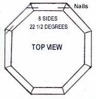 Fasten the 8 sides together using 8d finish nails in the angle. (as shown) Additional strength can be added by adding a top and bottom wood filler by tracing the shape of the newly assembled unit. This will be similar to the round wooden donut on the sheet metal version.