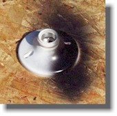 Step 6. Modify your electric light fixture to have an open bottom that will sit on round lighthouse top, and cover the utility light socket. You can let the light fixture sit in place or you can fasten it to the top in a variety of ways. We simply placed two dabs of clear silicone caulk and glued the fixture down. When it comes time to change the bulb we'll pry it up, and glue it down again.