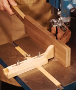 To use this guide, first mark a line along the top edge of the piece to be resawn. Adjust the center portion of the jig (A) until the bandsaw blade aligns with the marked line on the wood. Tighten the wing nuts that hold A securely to B. Tighten the wing nut in part C to secure it in the miter-gauge slot.