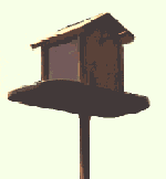 Cut the base piece to the desired shape (I find that an irregular shape works well, rather than trying to cut a geometrically-pleasing shape). Cut a hole in the middle of the base piece that is just large enough to accept the main pole. Now it is time to fasten everything together. Slot the plastic glass into each end of the side pieces and attach this four-walled construction to the base by screwing up from the underside of the base (two screws in each side piece should be adequate). Then rest the roof on top of this construction, and screw one side of the roof into the side pieces. The other roof side is obviously not attached as this should hinge up to allow for the bird food to be added.