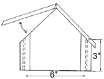 Firstly, the four corner piece must have a quarter of the length cut out. The easiest way to do this is to clamp the corner piece in a vise and saw along the length until the saw cut is half way through the pole. Then rotate the corner piece by 90 degrees, re-clamp, and then cut through again until the waste quarter is loose. Repeat this procedure for all four corner pieces. Glue a corner piece to each end of the side piece, ensuring that the base of the corner piece is aligned with the base of the side piece. However, there must be a thin gap between the corner piece and the end of the side piece that will allow the plastic glass to slot in (see diagram). Once this is dry cut the side pieces to the correct shape for the roof. The roof should be at a 45 degree incline, reaching to a point in the middle. Now cut the roof pieces to the required size. The apex of the roof should be angled by 45 degrees so that the two roof pieces rest snugly against each other. Then attach two small hinges between the two rood pieces (cutting a small slot so that the hinges do not cause a large gap between the roof pieces).
