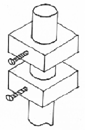 Then, wedge small pieces of wood into the base of the gap along which the plastic glass slides. This is done to create a gap between the base and the plastic glass, through which the bird food will spill out onto the base. Finally, stain the wood to the desired color and varnish. To attach the main pole, make a hole in the pole stoppers that is just large enough to accept the pole. Then place one pole stopper on each side of the base hole, and pass the main pole through these three pieces. Screw through each pole stopper into the main pole and this adequately fix the pole to the base (see diagram). |