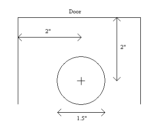 Now, using your 1.5" hole saw, drill the entry hole in the door. Position it as shown below: