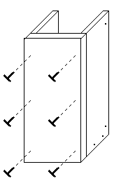 The door swings out from the bottom, pivoting at the top, and uses latch nails to hold it in place. The nails at the top of the door act as the hinge. Attach the door as shown below: