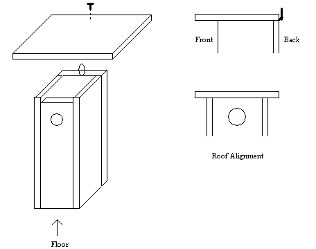 There should be a 3/8" gap between the edge of the floor and the back of the birdhouse. This gap will provide ventilation. The floor should be flush with the bottom of the house.