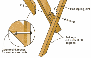 through the “X” of the legs and completely through the angled ends of each 2x4
