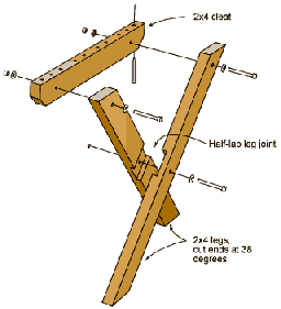 cut the half laps from each 2x4 leg. Re-clamp the legs in position. Attach leg