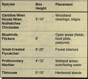 Properly constructed nest boxes can provide shelter in those areas negatively
