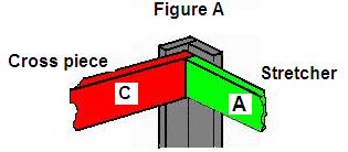 NOTE: orient the legs and cross pieces correctly. The cross pieces go against the side of the leg where they will be bolted to the same part that has the screws in it's face. See figure A.