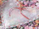 3. Fill the heart pouch with candy hearts and sew up the remaining opening of sachet to center and tie into bow.