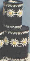 Materials: Spray paint (color of choice); 2 lb. coffee cans; Daisy or other type of trim; glue; Krylon or other clear protective spray coating.