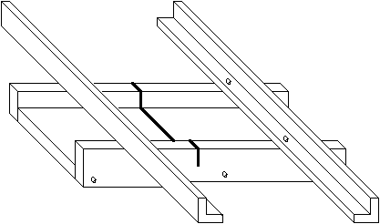 plank supported by two sawhorses, lay strips of wood the thickness of the base