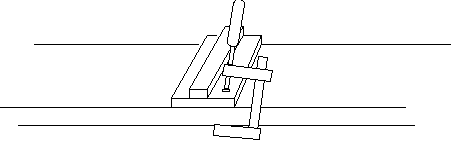 slot in the box. Place the saw on the runners, hold the wood in position making