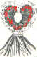 Make a tassel from red and white thread, attach to pointed bottom center of heart.