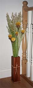Knock together this dried flower holder, use standard size 3/4" thick cedar fence boards and decorate it with a length of sisal twine. Parts
