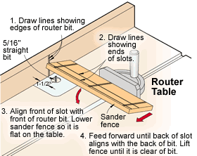 Rout each slot in three passes-the first about 1/4" deep, and each of the others