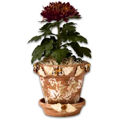 | 3. | Stencil or stamp on ivy, excluding rim of pot. Using makeup wedge, apply Deep Peach to first layer of ivy leaves, then apply Beige to overlapping ivy finishing with Gold layer of ivy. Let dry. |