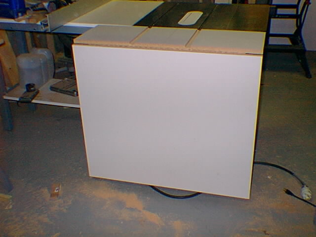 A couple of years ago I made a folding outfeed table for my Unisaw. It is fairly simple, consisting of melamine covered particle board, some 2"x2" angle iron, some 1.5"x1.5" angle iron, some 2"x2" square steel stock, a piano hinge and some nuts, bolds, screws and washers. A side table could be make the same way, either folding or not. One thing to note: the design assumes that you have a fence WITHOUT a rear rail, like a Unifence or a Biesemeyer. If you have a fence that does have a rear rail you'll either have to modify your fence or these plans to make things work. If you have a contractors saw with the motor hanging out the back you also may have to modify this a bit, although I don't think that will be necessary.