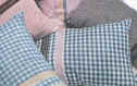 Materials: 36" wide gingham, 5/8 yard for rectangular pillow, 3/8 yard for square pillow. Ribbon for trim. Kapok for stuffing. Sewing thread.