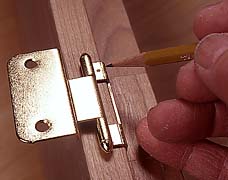 hinge as a template to bore the screwholes.