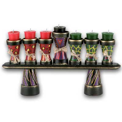 | 14. | Glue purple candle cup to center of sign. Continue gluing candle cups, three red to one side and three green to the other side until all are in place. |