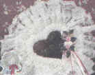 Materials: 2 1/2 yds flat lace, 8" wide; 6" styrofoam heart wreath; Glue gun or craft glue; Silk flowers; Ribbon scraps; Ribbon roses.