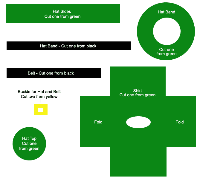 Cut out pattern pieces. Following the patterns cut out all felt pieces. Set aside.