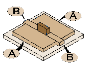 tall block is used as a temporary spacer to position the two narrow blocks