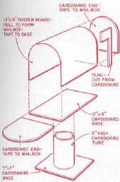 3. Attach poster cardboard to base with sticky tape strips, curving the thin cardboard to form the mailbox. Place mailbox, open end down, on a piece of heavy cardboard.
