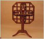 The stand therefore consists of four music desks (for clarity, I'll refer to them as points of the compass) mounted on a square frame with the corners cut off. To accommodate the overlap, the north and south desks are raised above the frame by 9mm, and the east and west desks by 18mm. The frame is attached to the central column by a cross of four bearers, and pivots around a central block. I thought I'd need an elaborate catch to hold the table in position, but the off-centre design of the pivot means that it's quite stable in both the horizontal and the vertical positions without any extra fittings.