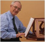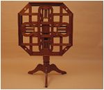 The music rests are 30x8mm and are simply glued to the front of the bottom edge of each stand. The props (8mm) are hinged to the back of the cross-piece of the lyre using 40mm solid brass hinges and 1/4in No.3 brass screws. The completed desks are hinged to the sides of the ring with 40mm brass hinges. The north and south desks are raised on a 9mm baton, and the east and west desks on an 18mm baton, both cut out in the centre to accommodate the folded prop. The ratchets are raised by the same amount as their stand, which rests on them when folded.