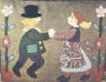 Materials: Heavy cotton fabric, light olive green, 36" wide, 3/8 yd. For lining, lightweight cotton fabric in matching color, 3/4 yd. Scraps of solid and print cotton fabric for appliqués as shown, or as desired. Matching sewing thread. Stitch Witchery® fusible web, 1/4 yd., 12" wide. Small amount of deep pink six-strand embroidery f1oss. Cotton or Dacron batting.