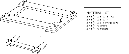 Cut slots in both ends of the second 18 1/2" long piece as shown below by drilling 1/4" holes at the end of the slots and cut between the holes with a saber saw.