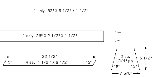 Trim both edges of the 26" long support piece to 15° angles, then fasten it to bottom of top with glue and wood screws.