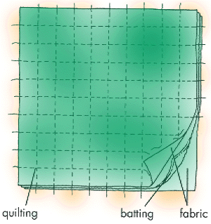 layers of cotton fabric. Stitch quilting lines every 1" in both directions.