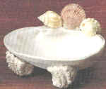 3. Use 3 similar shaped shells for pedestal feet. Glue one to center back of dish shell toward bottom and two in front as shown in photo. Be certain that all feet are glued evenly to base shell so that the dish will sit even. That's it! Enjoy