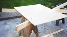 Lay an 8' two by four corner to corner across a 4 X 8 sheet with the