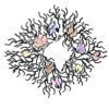 | Overlap bunches covinging the wire ties. Spray sealer on the twig wreath and dry. Now, nestle the shells into the base of the twig wreath. |