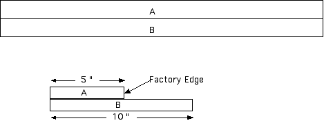Position the base of your saw against the edge of "A" and cut through the entire length of "B".