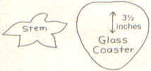 To make the coasters, you will need red fabric with tiny white dots like dotted Swiss, some bright green fabric for the stem and hull, fabric glue and clear adhesive backed paper. Be sure the scissors are very sharp, so there will be no ragged edges on the paper or fabric.