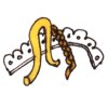Collect gold (or silver metallic) cord, braid, ribbon or white lace. |