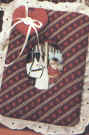 Step 18. Trace small heart pattern below onto contrasting fabric twice; cut out 2. Sew the pieces together, right sides together, using a 1/4" seam allowance. Make a small slit in the back of the heart. Turn heart right side out through this slit. Stuff lightly with batting and slip-stitch the slit closed.