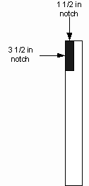 a) Using the tape measure, measure and mark the 1 ˝ by 3 ˝ inch notch at the end of the 30 inch boards (see figure above)