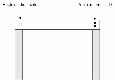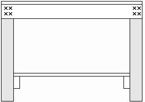 4) Secure the long cross boards that will support the top (the boards cut to the length of the table top) on top of the legs. The cross board should rest on the 26 ˝ in. board of the leg, and the posts of the 30 in. board of the leg should be positioned on the inside edge (see above figures above and below).