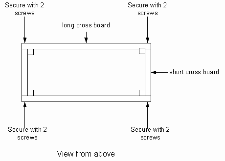 6) Using the 2 small cross boards, secure the two leg assemblies together. (This step may require help from another person.)