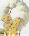 6. Add a fabric bow at the base of the wreath to hide ends of the skeins. Sew or pin the bow to the wreath through the back of the knot, making sure it’s secure.